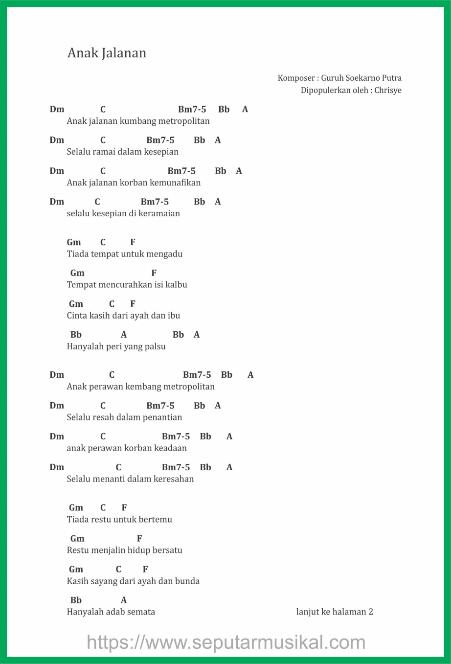 Lirik Dan Chord Lagu Anak Jalanan Chrisye
