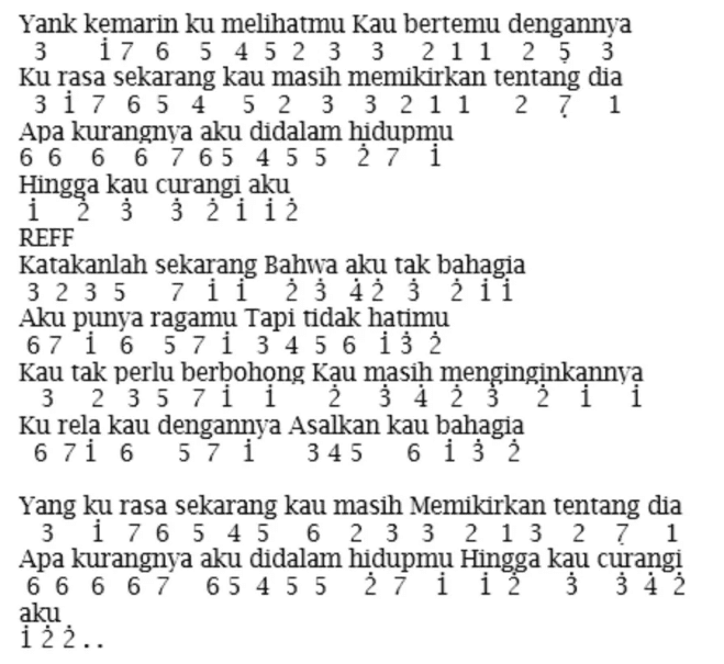 Not Asal Kau Bahagia Pianika Not Musik Surat Cinta