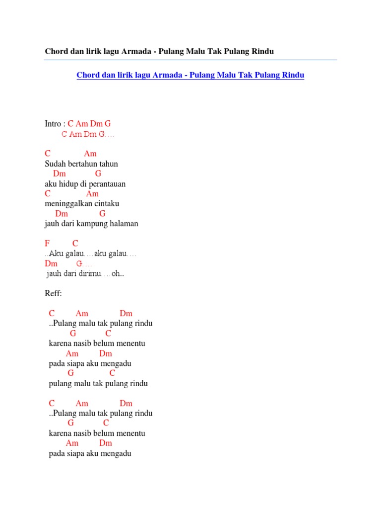 Lirik Lagu Dan Kunci Gitar Armada Pulang Malu Tak Pulang Rindu Lamanqu Id