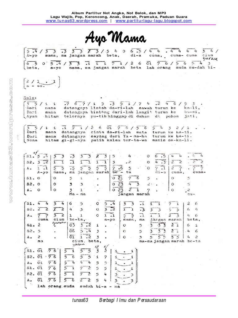 Lagu Daerah Indonesia Not Lagu Ayo Mama Facebook