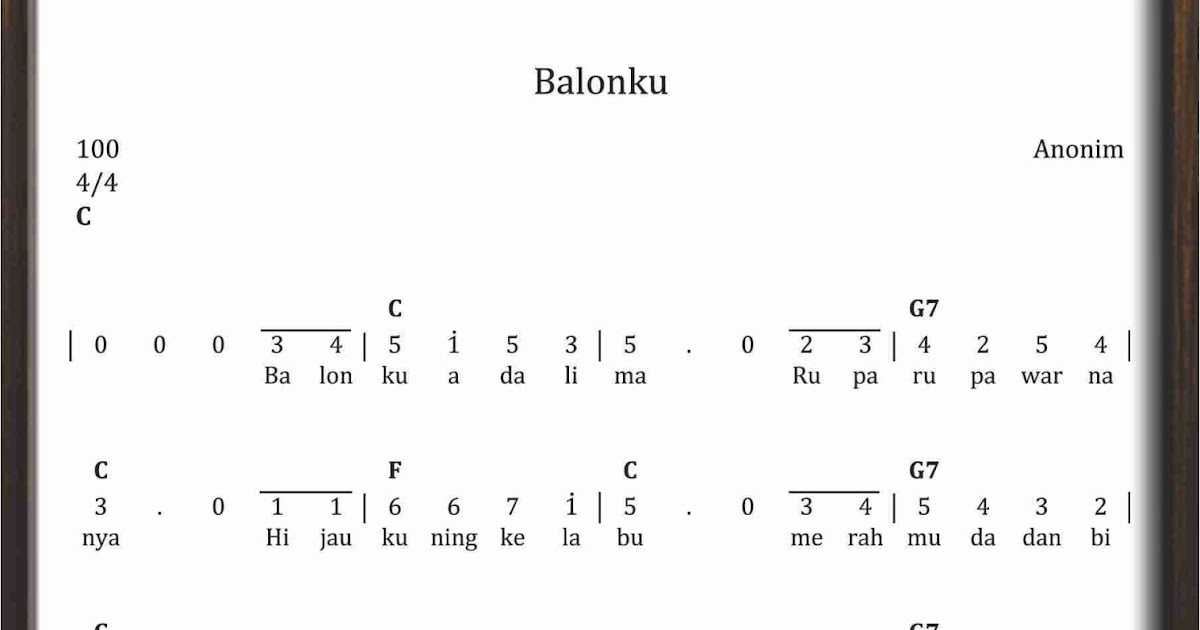 Chord Lagu Ku Not Angka Pianika Balonku Ada Lima