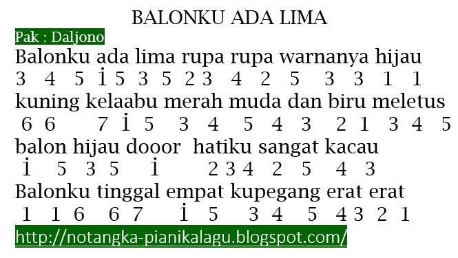 Not Angka Lagu Balonku Ada Lima Kumpulan Not Angka Lagu