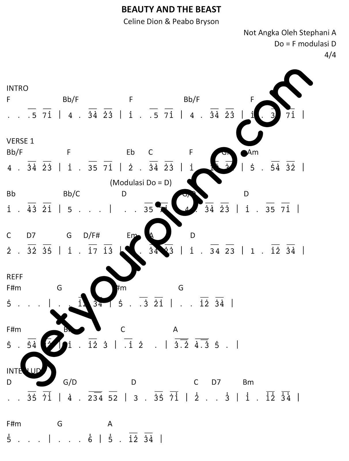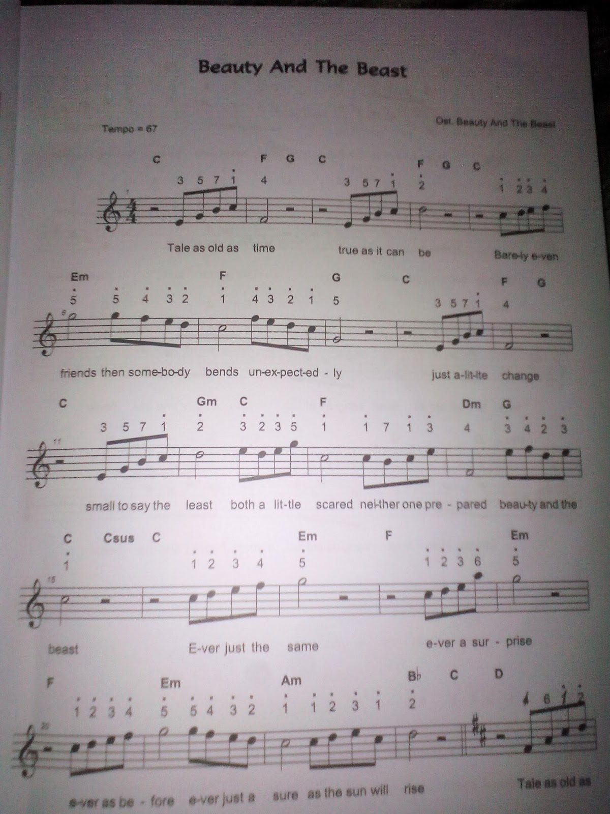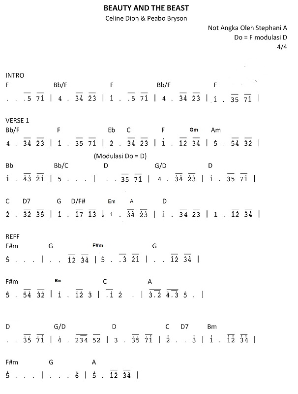 Not Lagu Beauty And The Beast Not Lagu Anak Partitur Lagu Terbaru