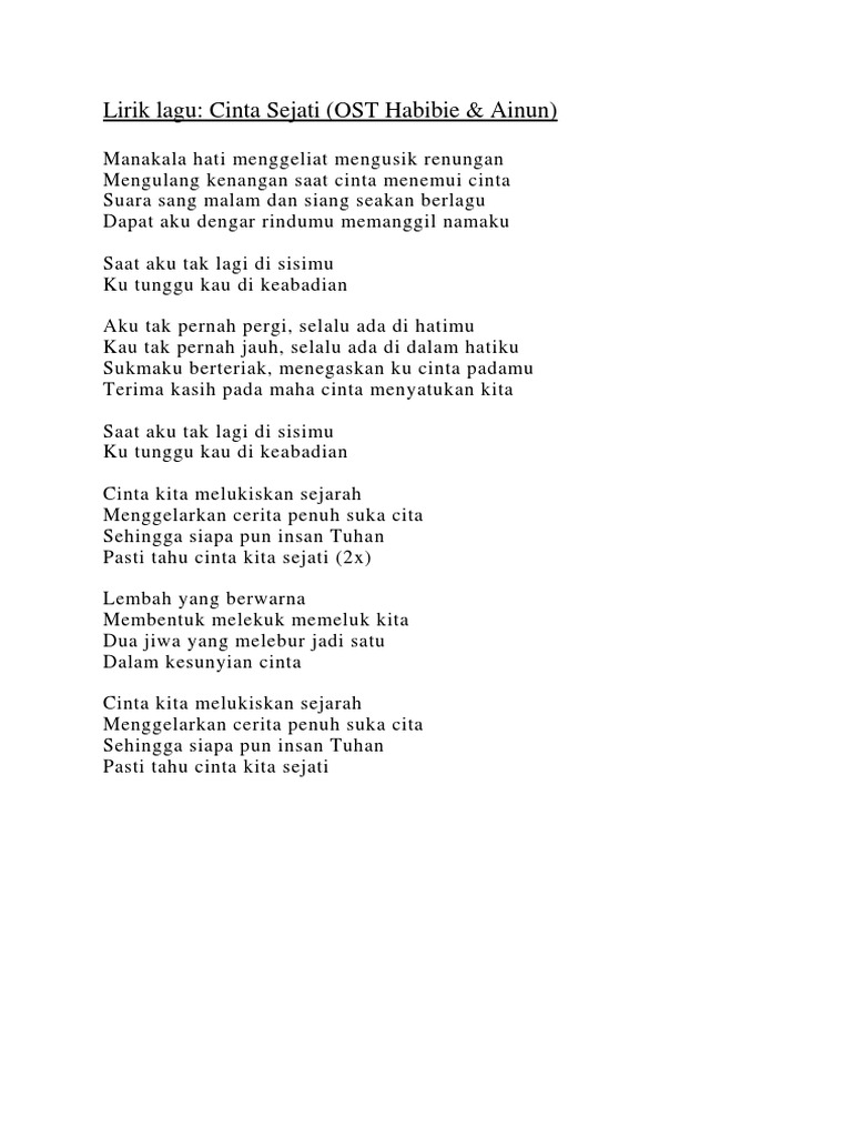 Lirik Lagu Cinta Sejati Yang Jadi Ost Film Habibie Ainun