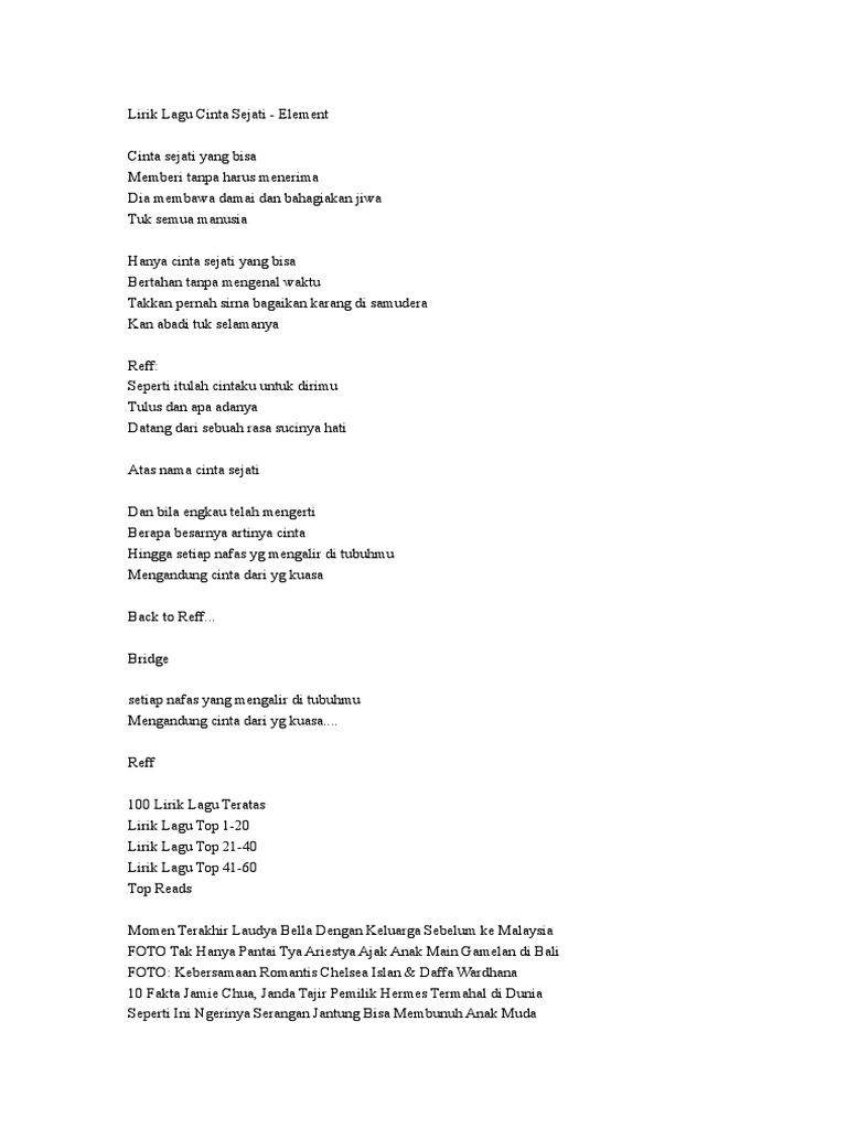 Not Angka Lirik Lagu Element Cinta Sejati Lhia S Music Notes