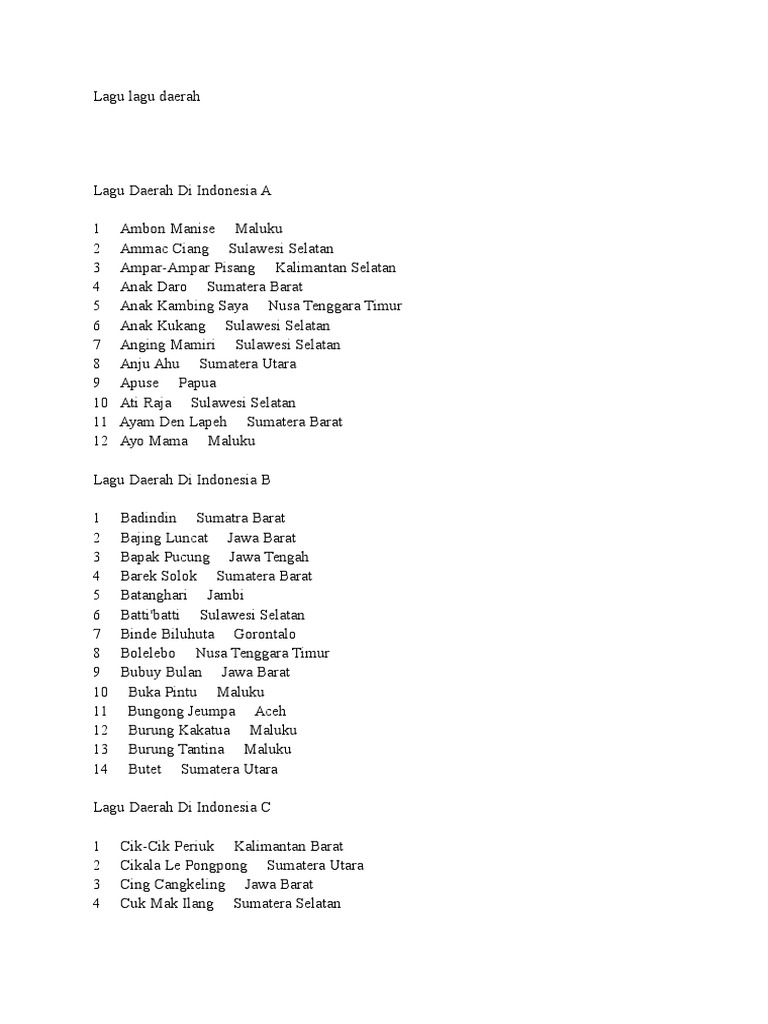 Daftar Lagu Lagu Daerah Di Indonesia Kamus Data