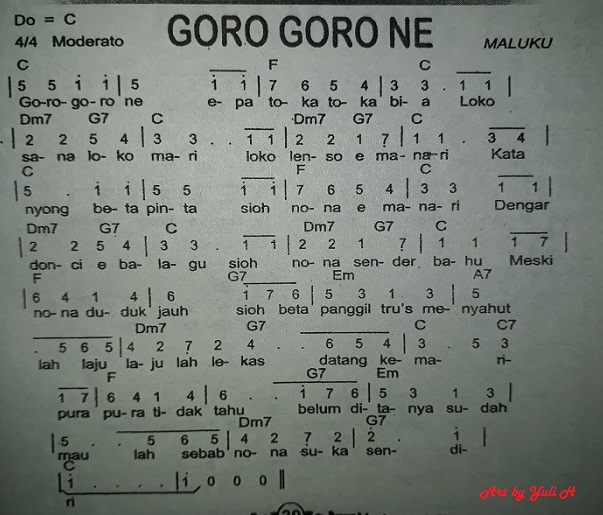 Not Angka Lagu Huhate Lagu Daerah Maluku Not Angka