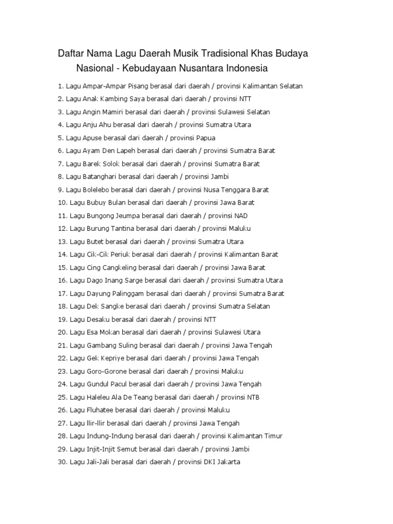 400 Lagu Lagu Daerah Indonesia Dan Asalnya Lengkap 34 Provinsi