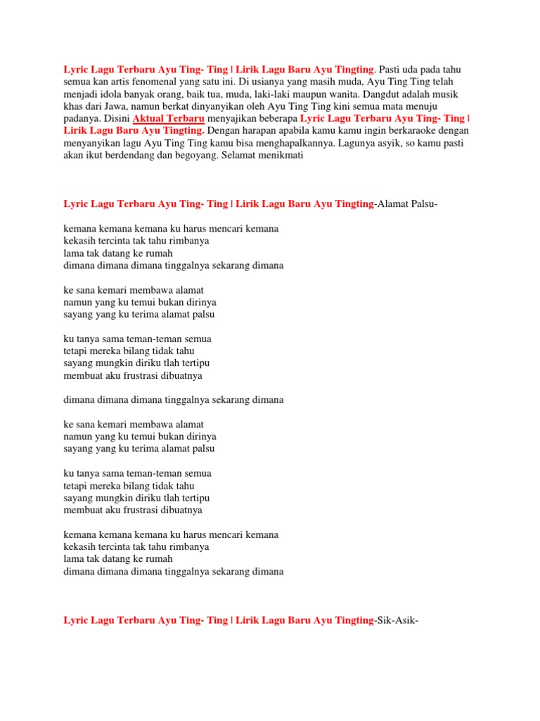 Trending Youtube Ini Lirik Lagu Dangdut Tatitut Ayu Ting Ting Jurnal Palopo