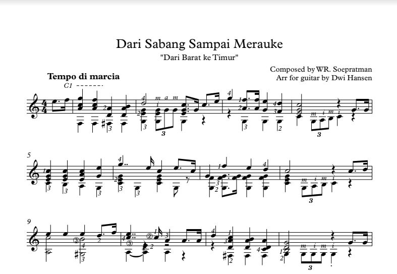 Notasi Angka Lagu Dari Sabang Sampai Merauke