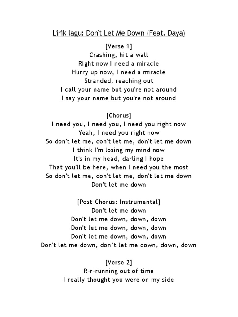 Don T Let Me Down The Chainsmokers Ft Daya Lirik Lagu Barat Dan Artinya Translagu