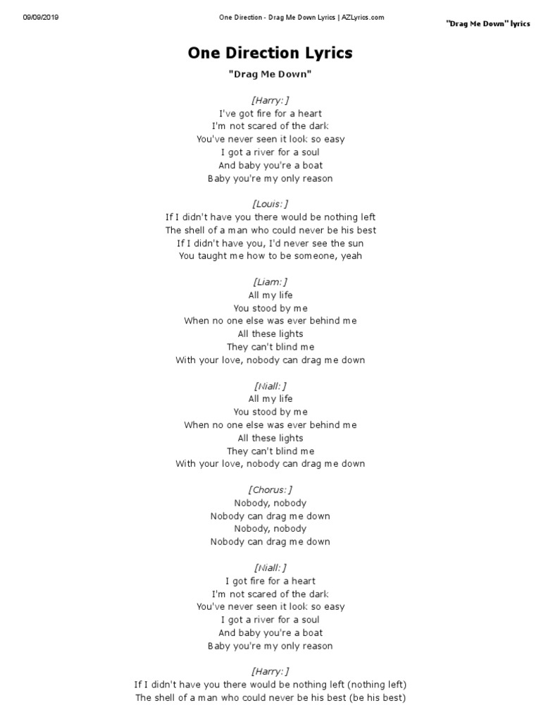 Tolong Dong Jelaskan Makna Lagu Drag Me Down One Direction Brainly Co Id