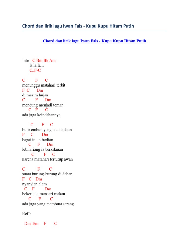 Lirik Dan Chord Lagu Hitam Putih Fourtwnty