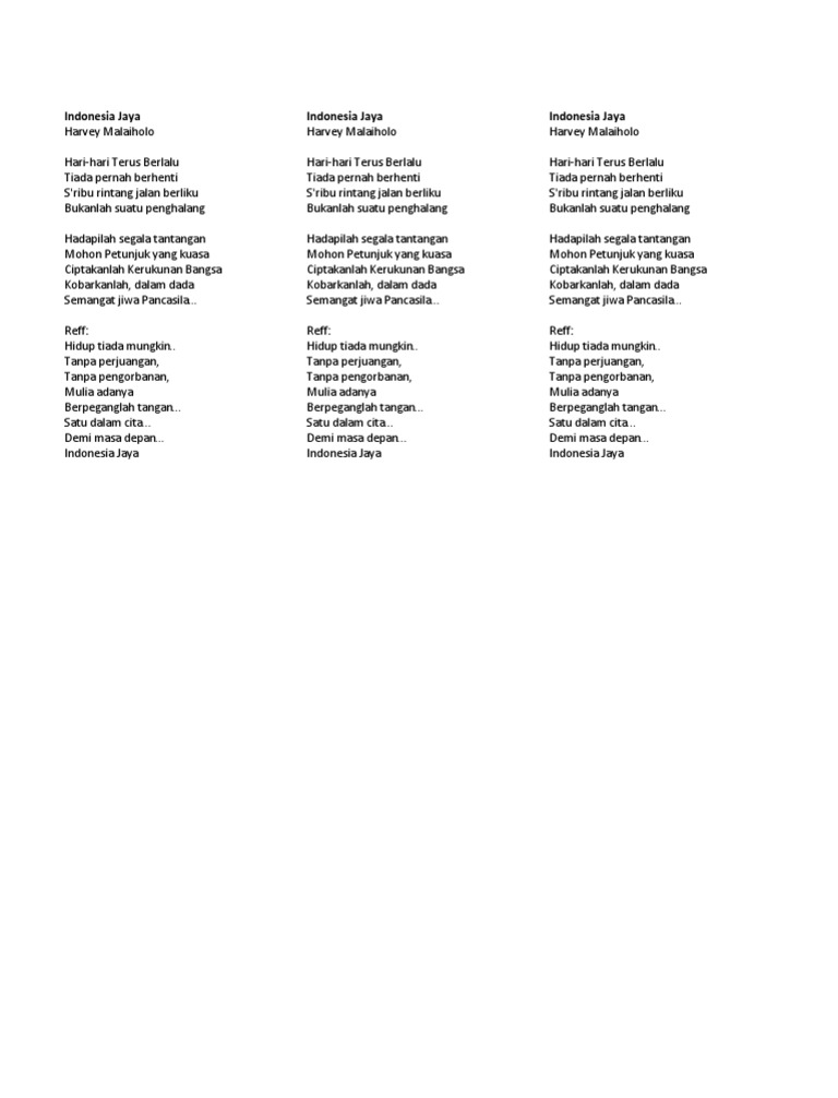 Lirik Lagu Indonesia Jaya Harvey Malaiholo Merdeka Com