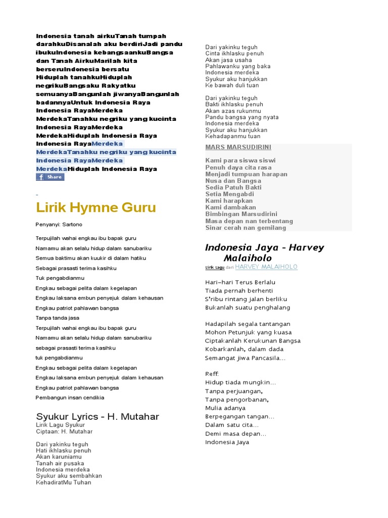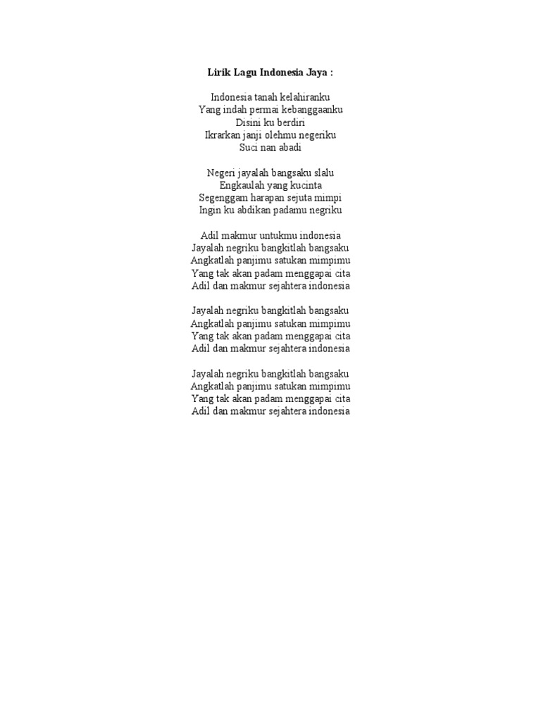 Tuliskan 1 Bait Lagu Indonesia Jaya Brainly Co Id