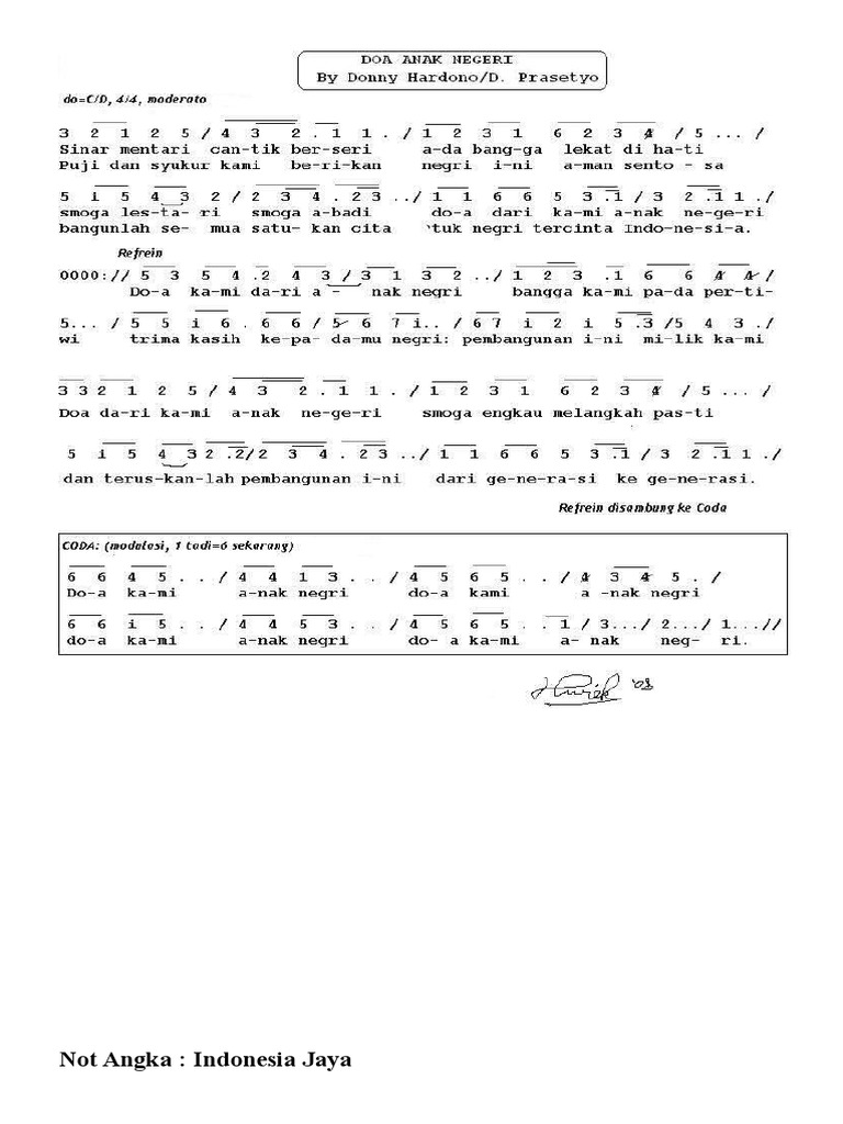 Not Angka Lagu Indonesia Jaya C Do