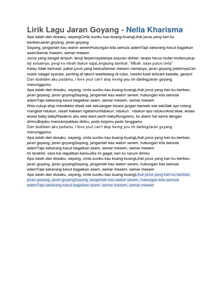 Lirik Dan Terjemahan Lagu Jaran Goyang Dan Artinya