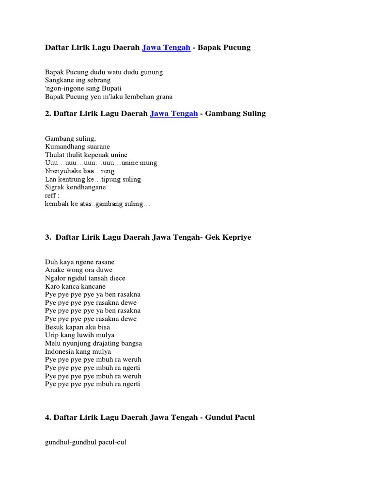 Apa Saja Lagu Daerah Yang Berasal Dari Provinsi Jawa Tengah Seni Musik Dictio Community