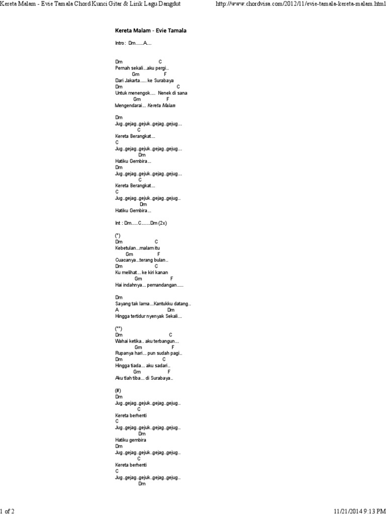 Chord Gitar Dan Lirik Lagu Indonesia Terbaru Chord Dan Lirik Lagu Kereta Malam Soimah