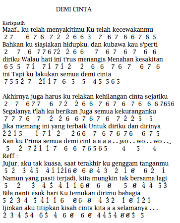 Not Lagu Kerispatih Demi Cinta Not Lagu Not Angka Indonesia Terlengkap 2021
