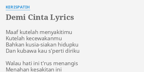 Demi Cinta Lyrics By Kerispatih Maaf Kutelah Menyakitimu Kutelah