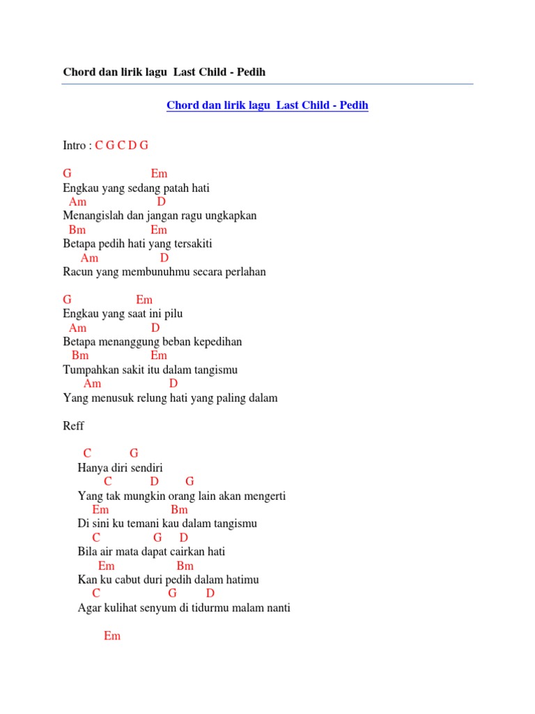 Lirik Lagu Last Child Pedih Lengkap Dengan Chord Kunci Gitarnya Lamanqu Id