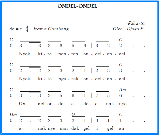 Lirik Dan Not Angka Lagu Ondel Ondel Pubdekdok