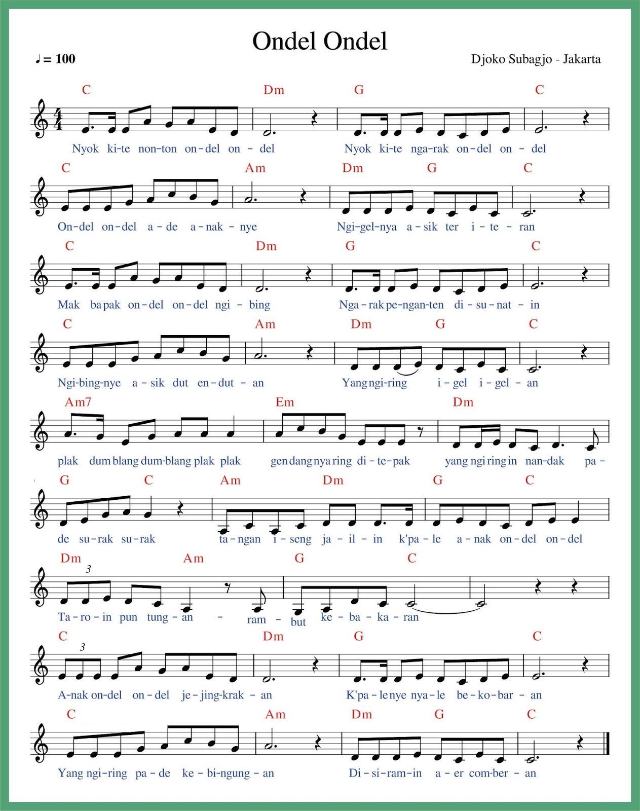 Halaman Unduh Untuk Lirik Lagu Ondel Ondel Beserta Not Angka