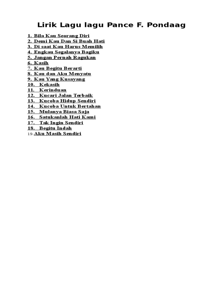 Lirik Lagu Pance F Pondaag Dan Video Karaoke Kumpulan Lyrics Terlengkap Di Wowkeren Com