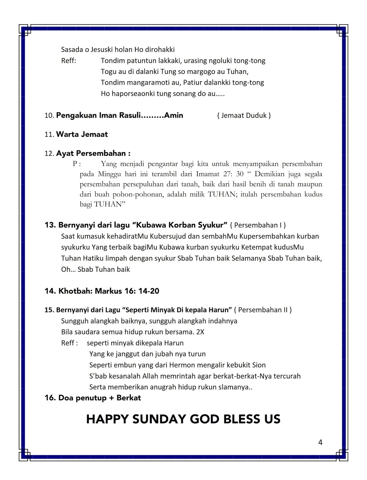 Lirik Lagu Rohani Untuk Penutup Ibadah Delinews Tapanuli