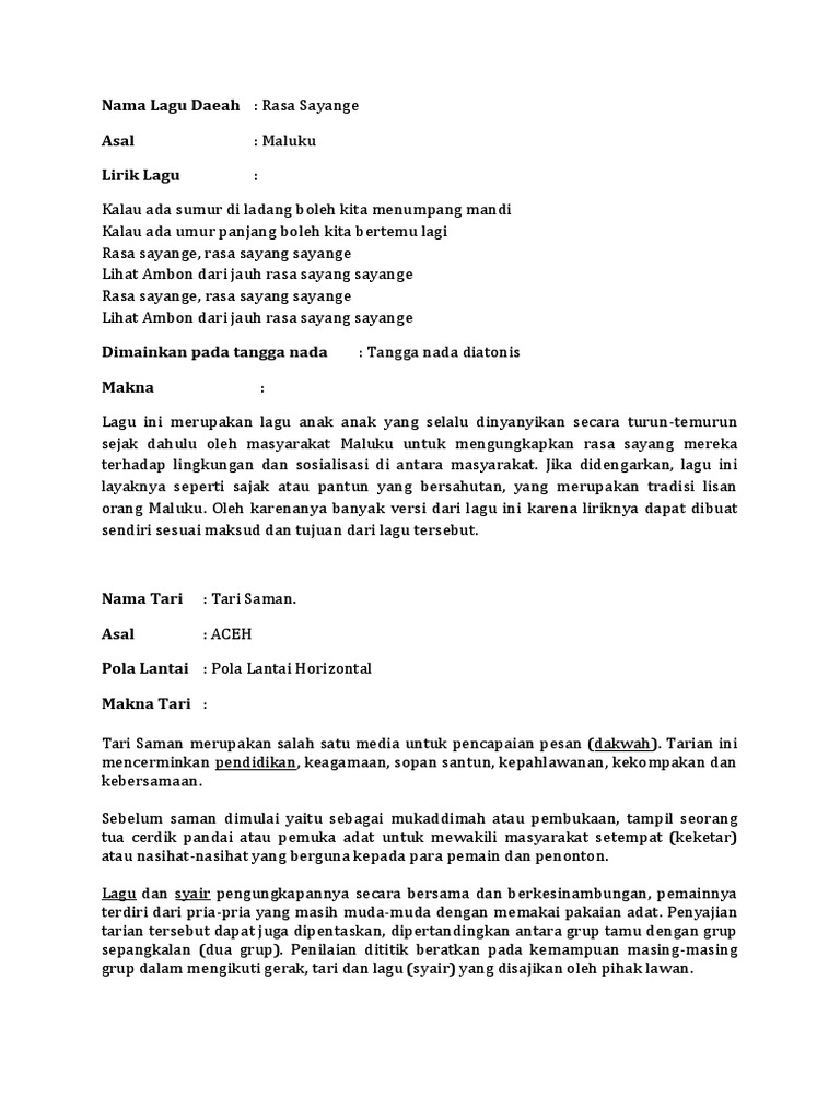 Apa Nasihat Yg Terdapat Dalam Lagu Rasa Sayange Brainly Co Id