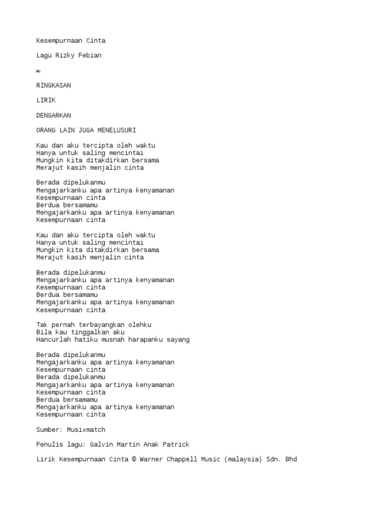 Lagu Kesempurnaan Cinta Archives Not Lirik Lagu