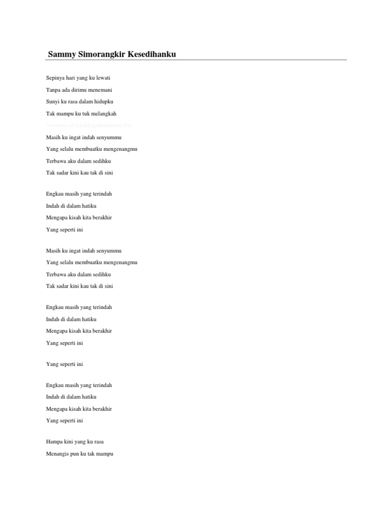 Lirik Lagu Kesedihanku Yang Dipopulerkan Oleh Sammy Simorangkir Sonora Id