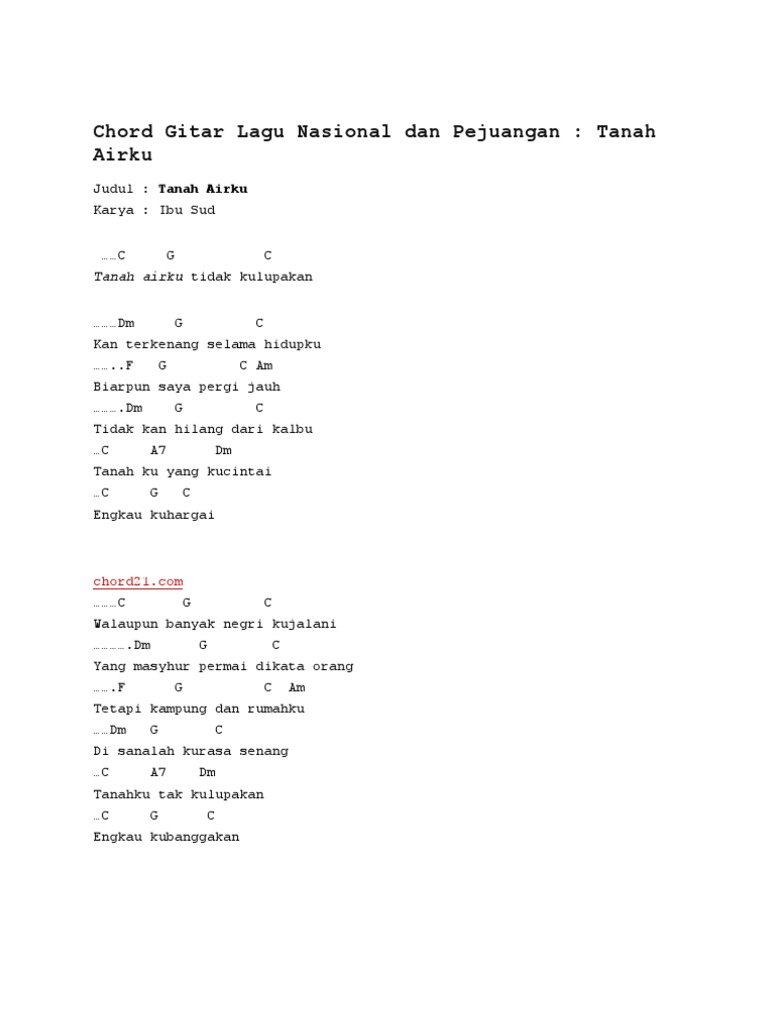 Chord Kunci Gitar Dan Lirik Lagu Tanah Airku Ciptaan Ibu Sud Cocok Dinyanyikan Di Hari Kemerdekaan Sripoku Com