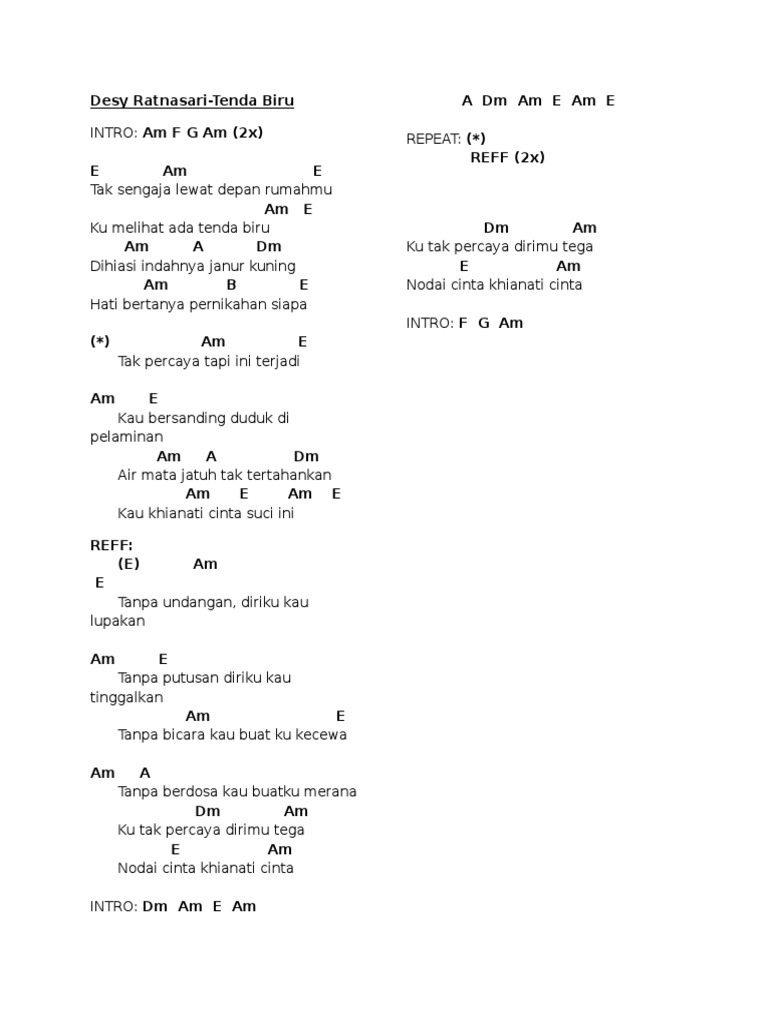 Chord Gitar Dan Lirik Lagu Tenda Biru Desy Ratnasari Cover Mario G Klau Tribunmanado Co Id