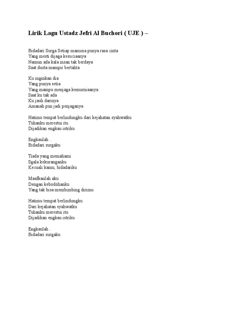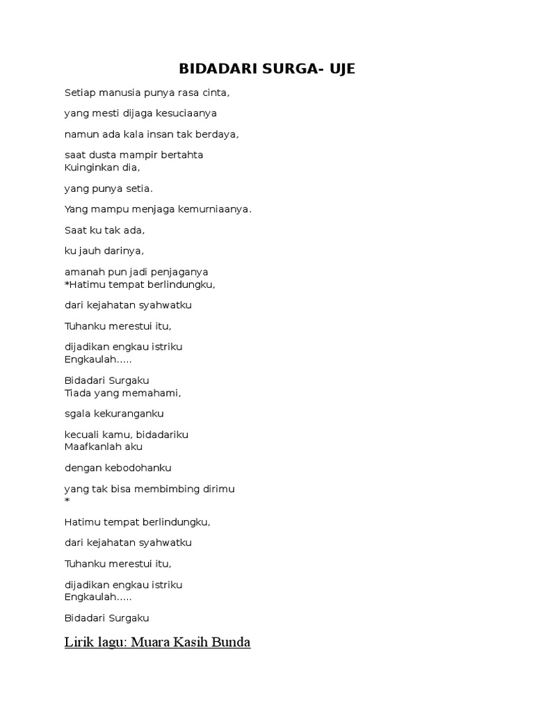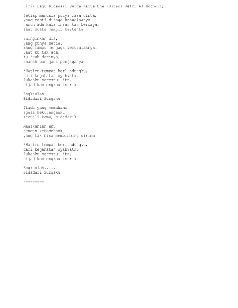 Lirik Lagu Bidadari Surga Uje Lirik Lagu Lirik Lagu