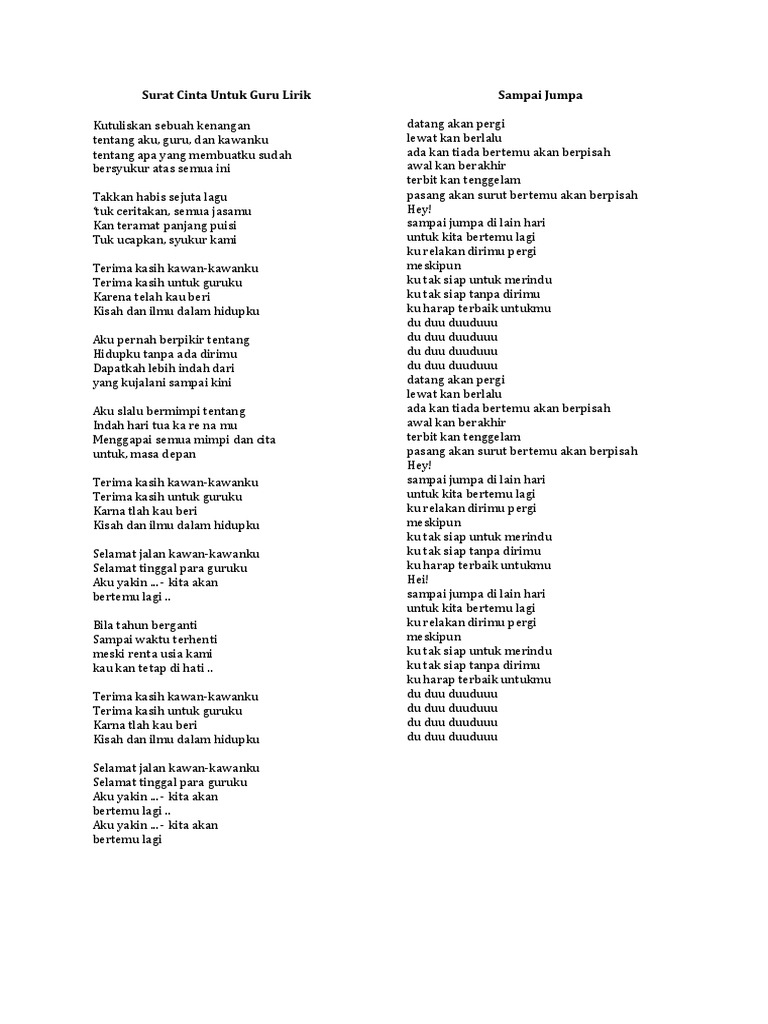 Lirik Lagu Surat Cinta Untuk Guru Lagu Perpisahan Sekolah Lirik Plus