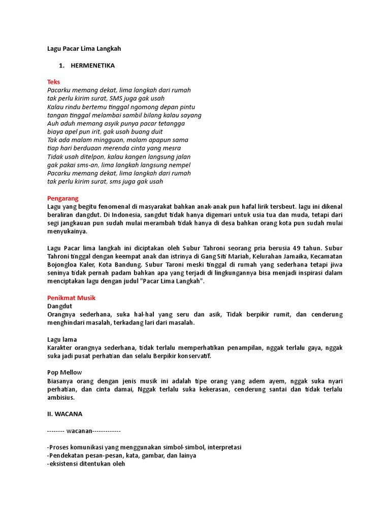 Artikel Lirik Lagu Pacar Lima Langkah Dari Rumah Hbs Blog Hakana Borneo Sejahtera