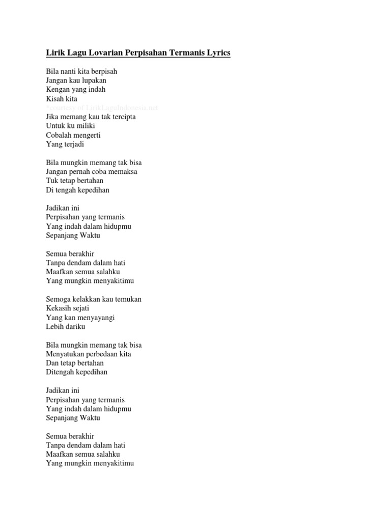 Lirik Lagu Perpisahan Termanis Yang Dipopulerkan Oleh Lovarian Sonora Id