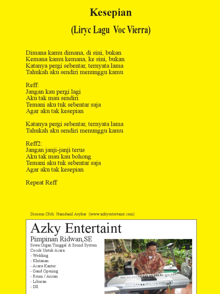 Lirik Dan Chord Lagu Kesepian Vierra Zonakamu