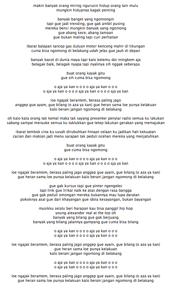 Lirik Lagu O Aja Ya Kan Young Lex Lirik Lagu Populer