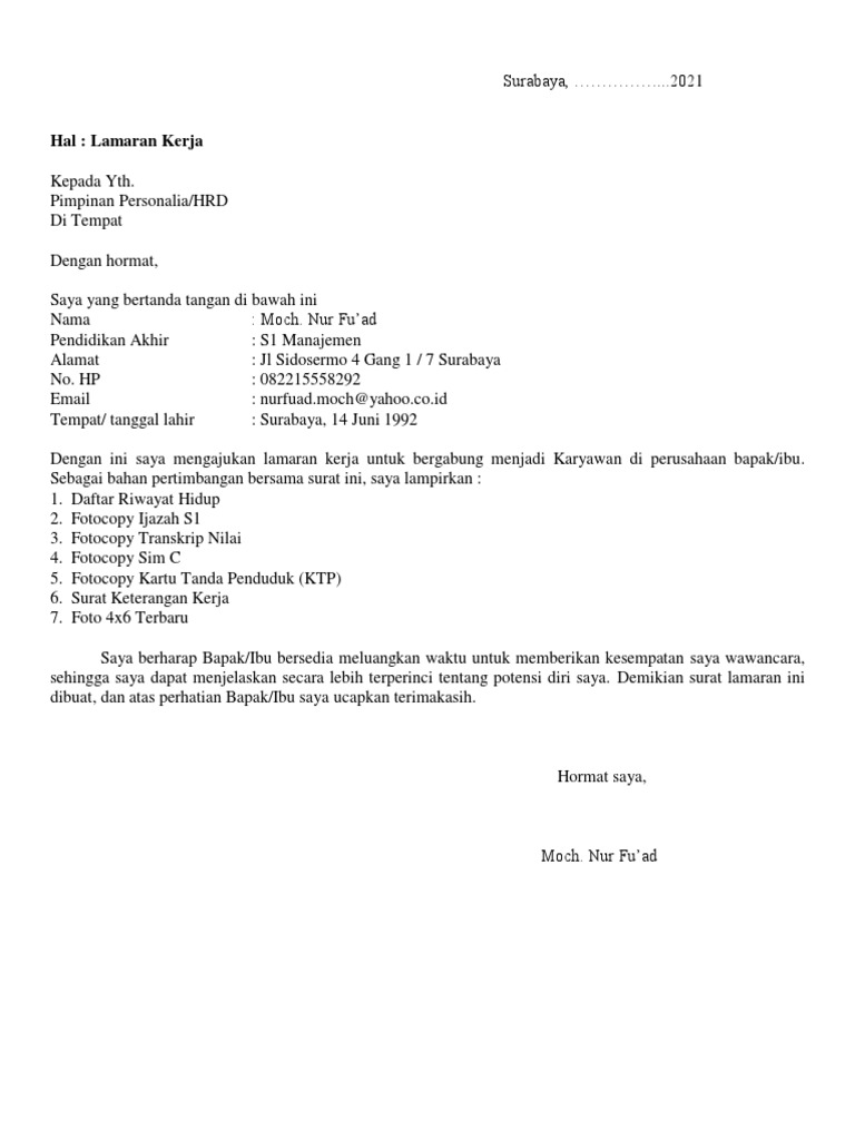 Download 43 Contoh Surat Lamaran Kerja Menarik Baik Dan Benar 2021 Bentuk Doc Pdf