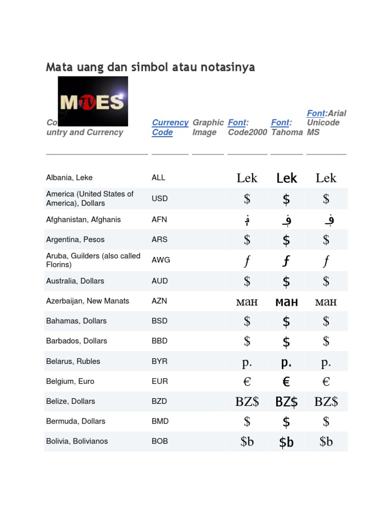 Mata Uang Kode Simbolnya Berdasarkan Negara Seluruh Dunia Exchange Rate Currency