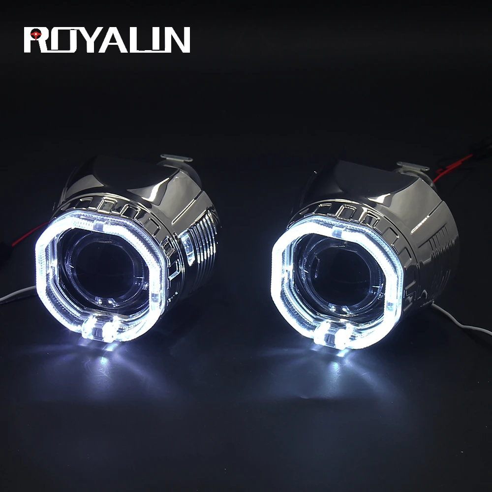 Royalin Mobil Square H1 Led Angel Eyes Lampu Lensa Universal Motor H4 H7 Bi Xenon Lampu Proyektor Putih Iblis Mata Cincin Mobil Aksesoris Aliexpress
