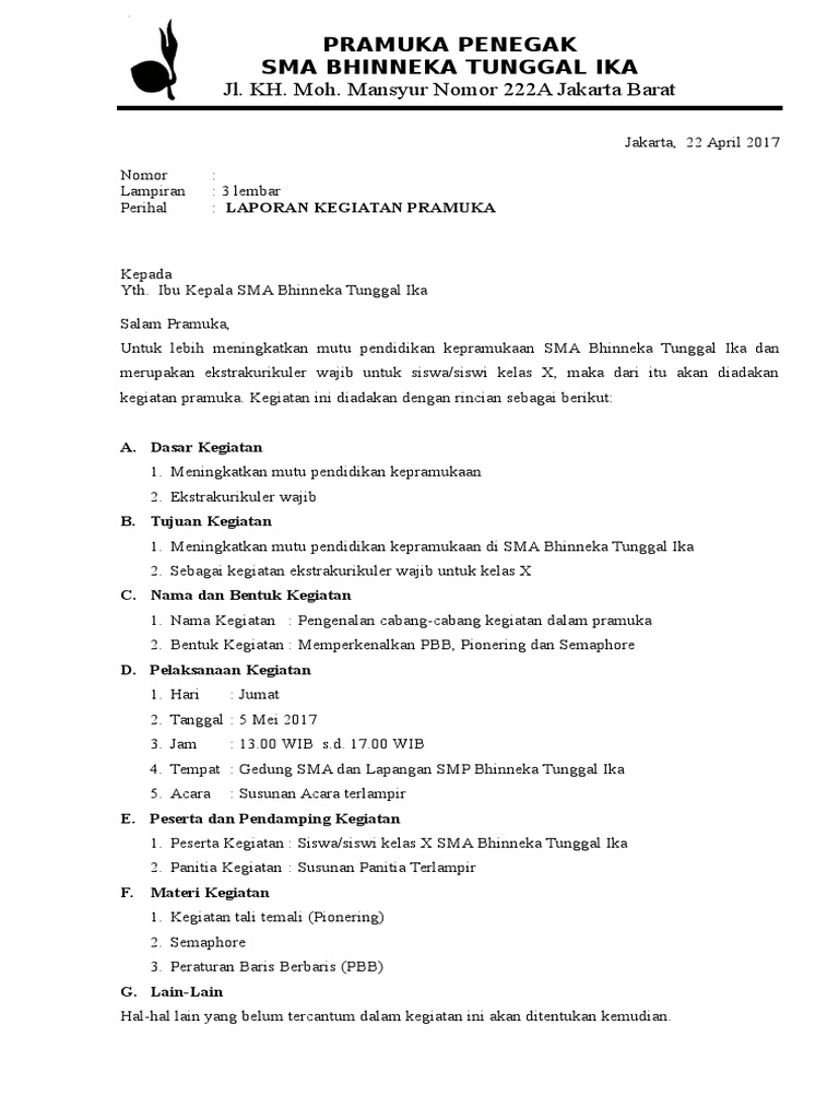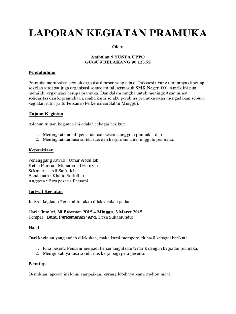 Contoh Laporan Kegiatan Pramuka Info Kampus Dan Sumber Referensi Kuliah