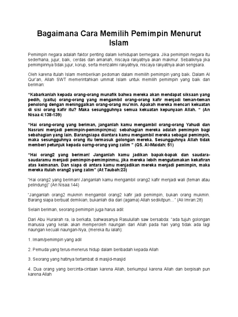4 Panduan Memilih Pemimpin Syubhat Dan Larangan Memilih Pemimpin Non Muslim Deerham Com