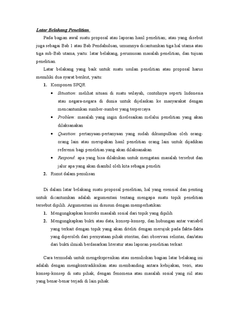 Contoh Latar Belakang Penelitian Dan Makalah Ilmiah Doc Karinov