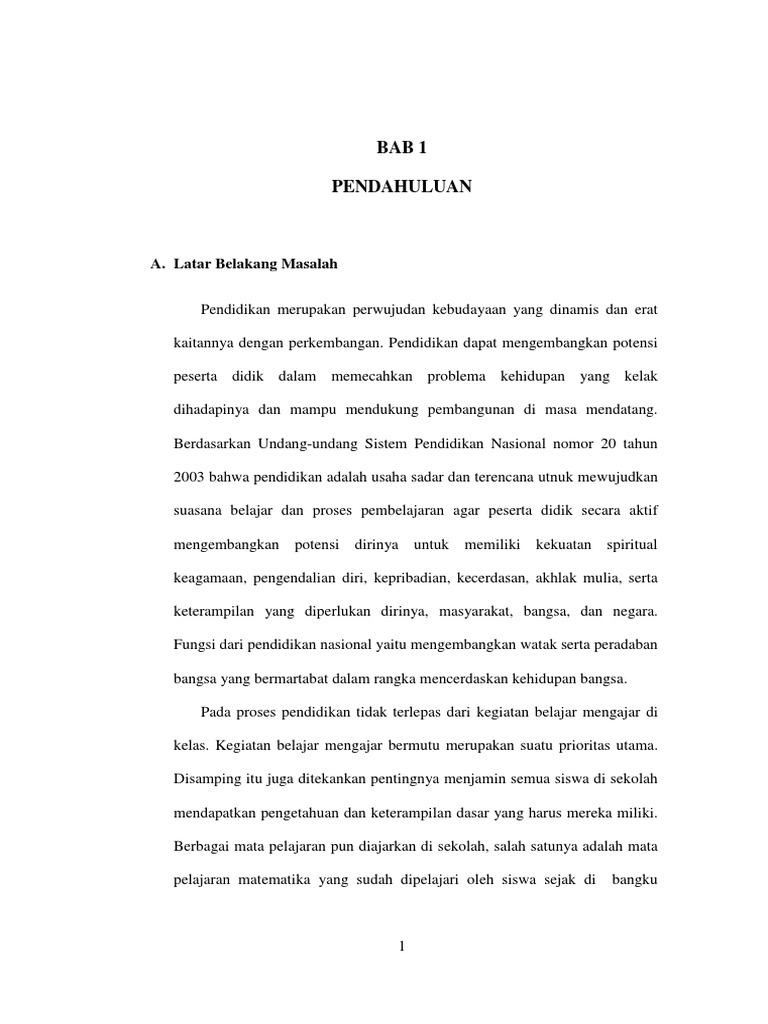 1 Bab I Pendahuluan A Latar Belakang Masalah Pendidikan