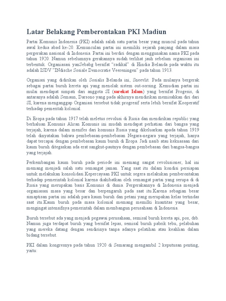 Latar Belakang Terjadinya Pemberontakan Pki Di Madiun Goreng