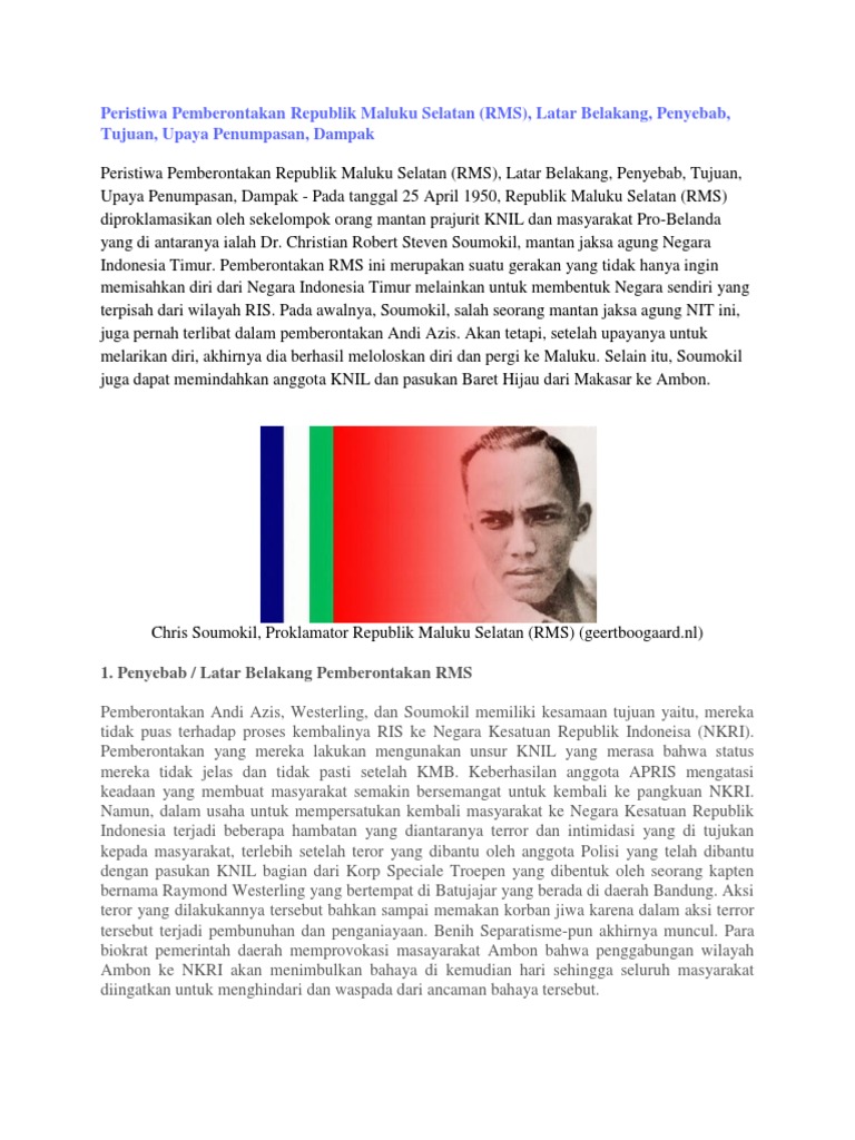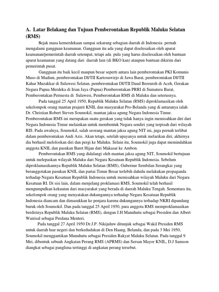 Jelaskan Latar Belakang Pemberontakan Di Atau Tii Dan Rms Di Indonesia Jawabannya